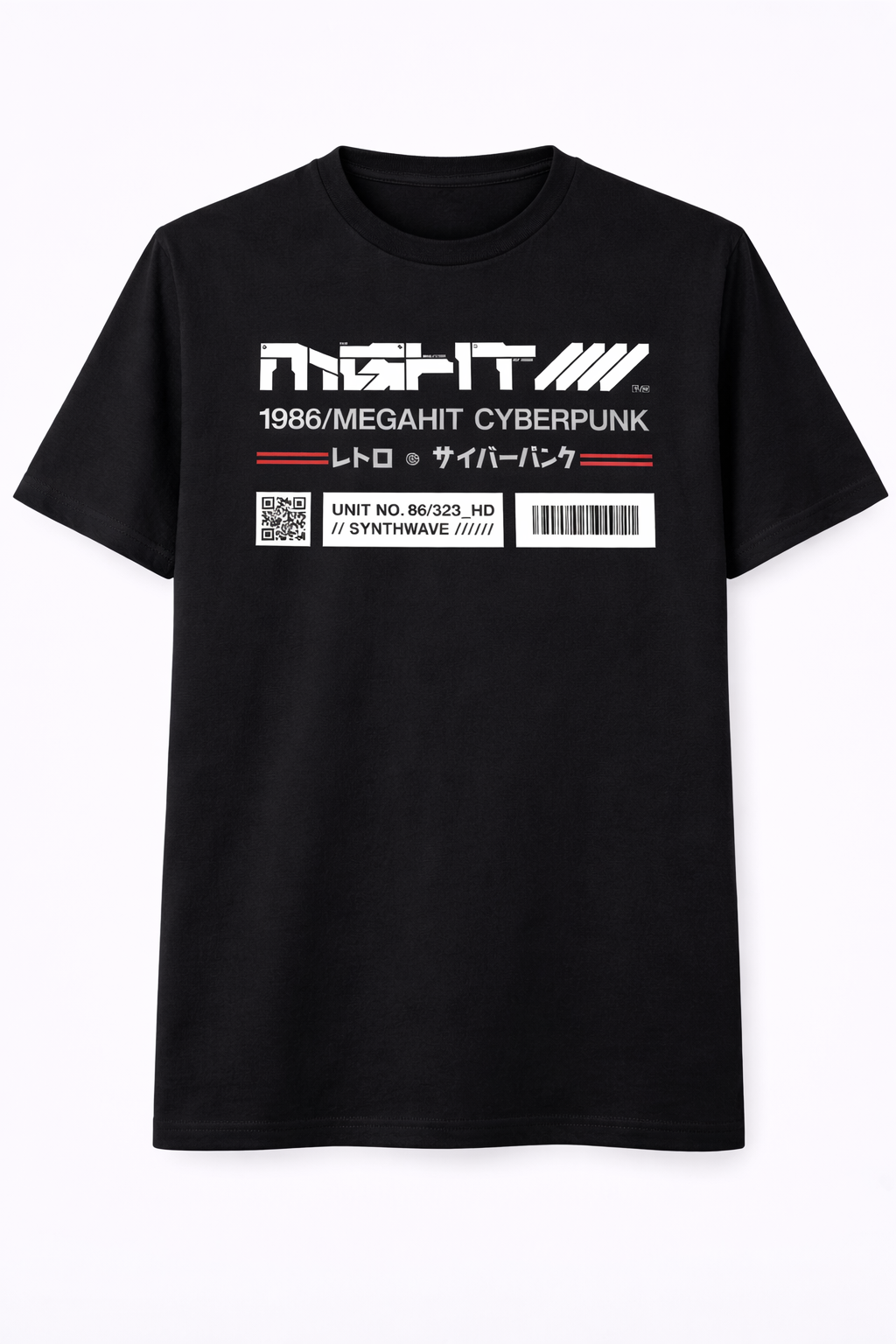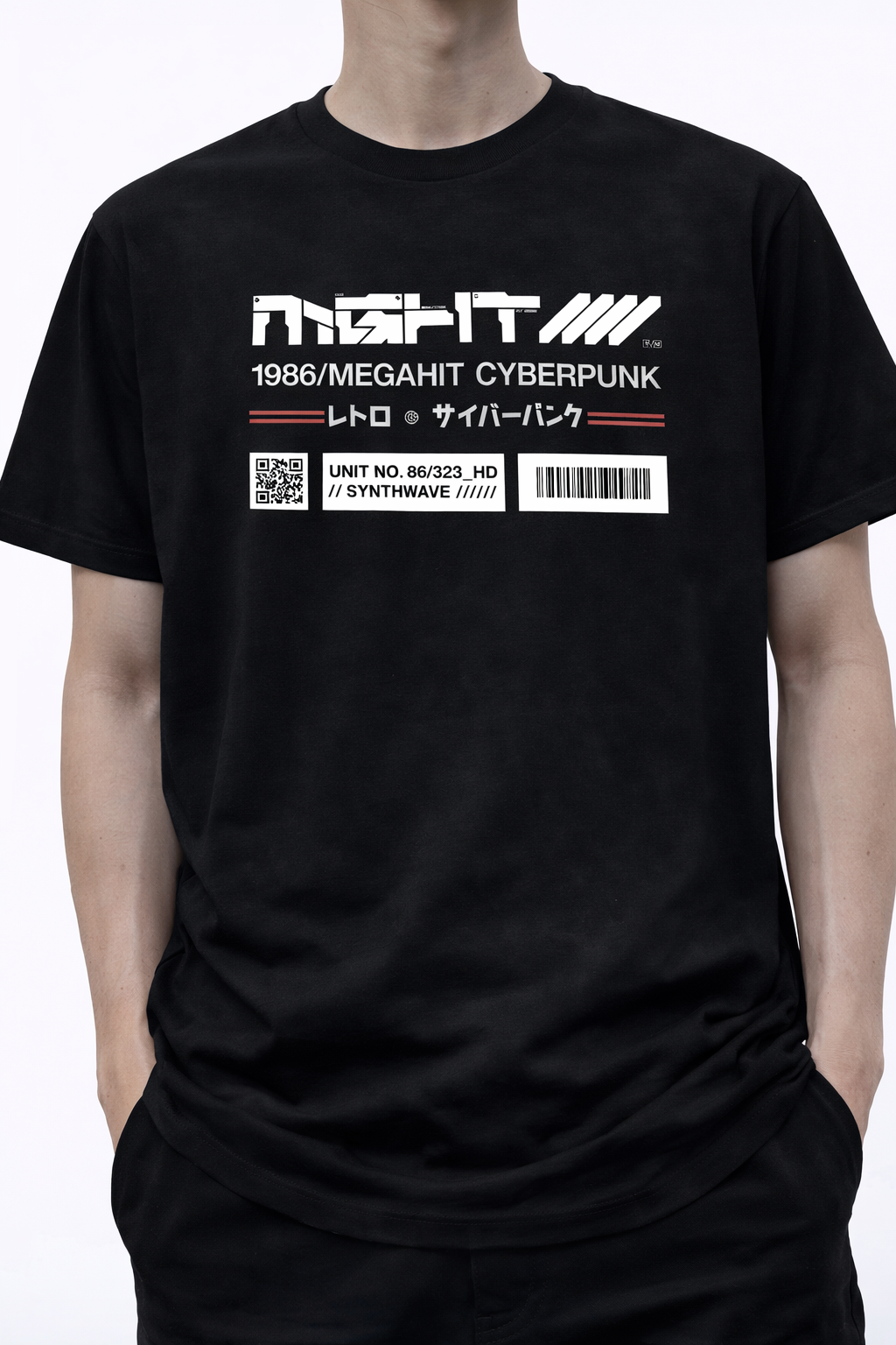 Rewind to a Futuristic Past Channel the high-tech, retro-future energy of the mid-80s with our “Megahit 1986 Cyberpunk Synthwave” Tee. This original graphic design features a sleek, industrial layout combining bold futuristic typography, technical data markers, and a stylized barcode aesthetic. It is an essential piece for fans of synthwave music, neo-noir cyberpunk culture, and high-contrast urban streetwear.