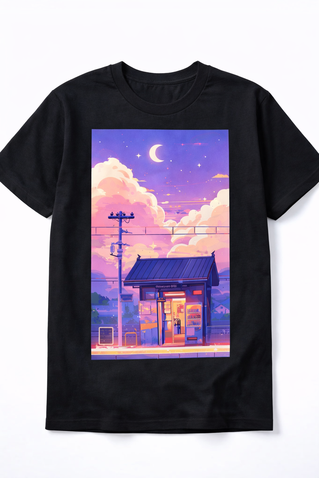 GearSenpai – Moonlight Station Pastel Night Art Tee – 100% Cotton Unisex Aesthetic T-Shirt