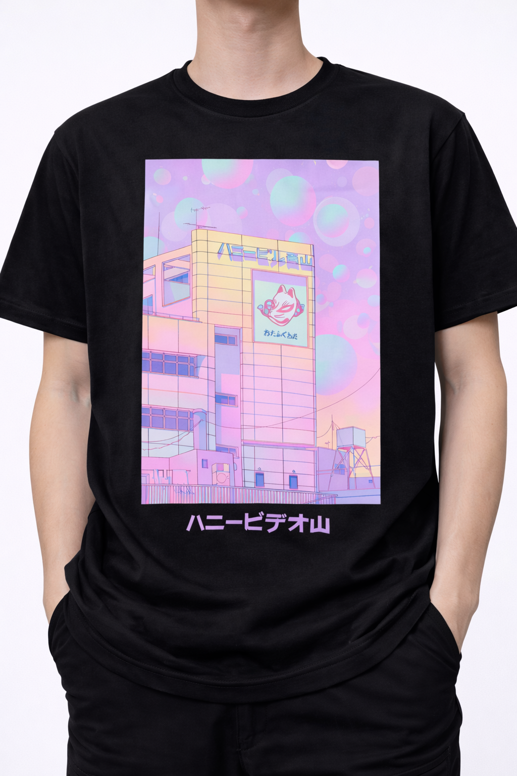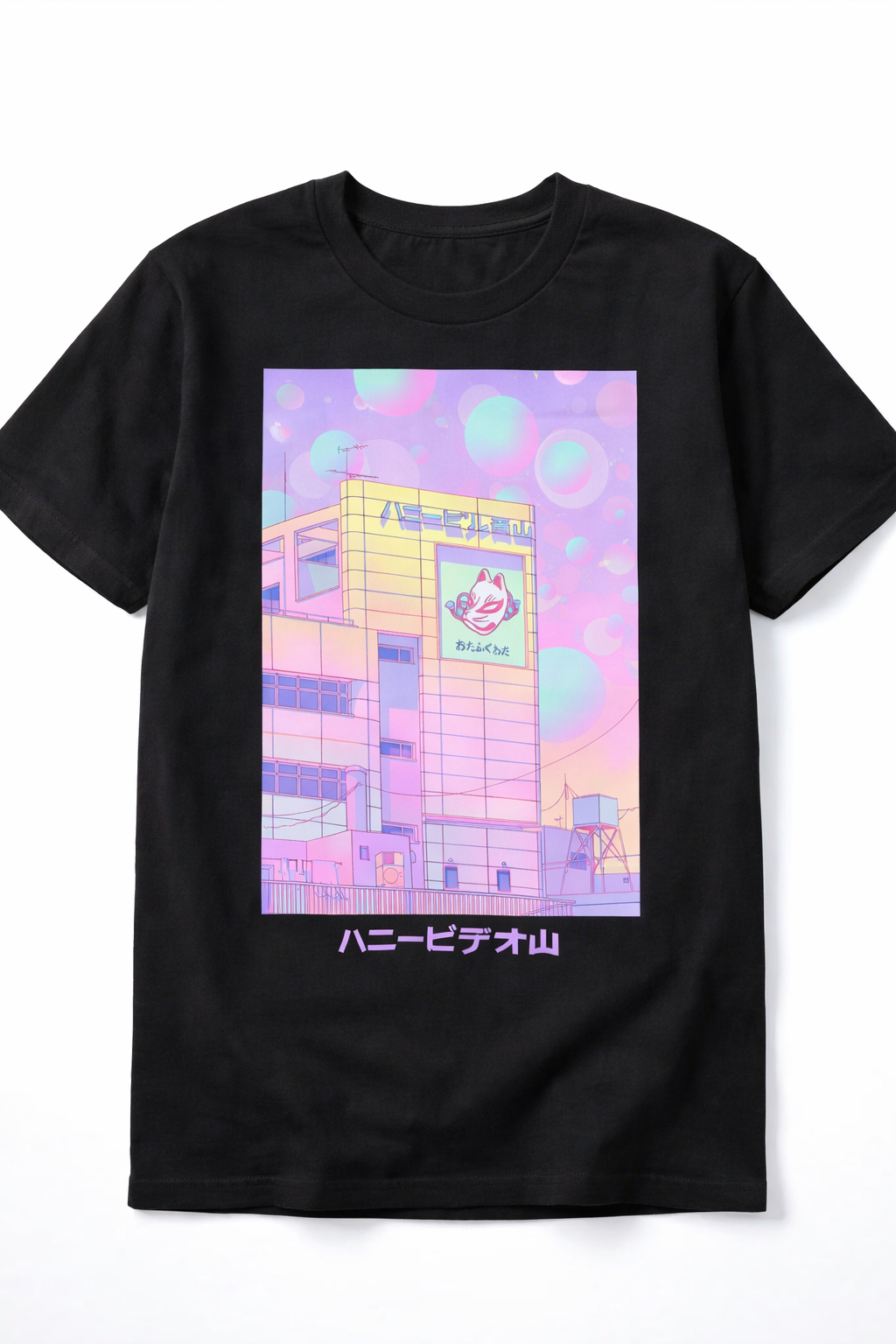 High-Definition Print: Utilizes professional Direct-to-Garment (DTG) printing to perfectly capture the intricate pastel gradients, dreamy bubbles, and sharp Japanese typography.